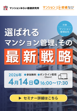 2月に配信した、マンションみらい価値研究所とマンション管理組合向け修繕工事見積プラットフォーム「マンション修繕なび」による共催無料WEBセミナー 『選ばれるマンション管理、その最新戦略』 は、おかげさまで大変ご好評をいただきました。
